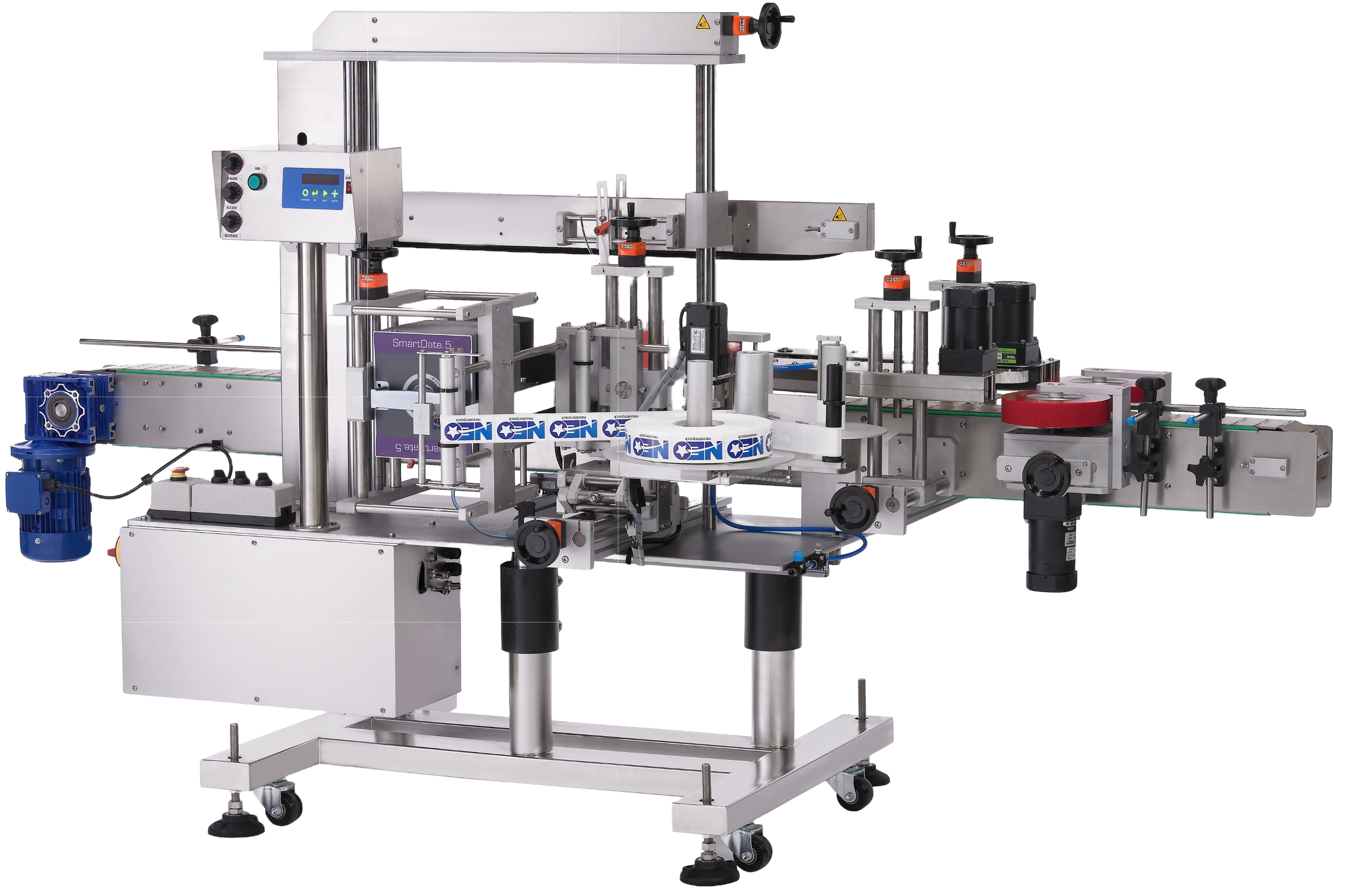 自動​雙面​貼標​機L​D​3000​是​款​可​一​機​雙用,​以​在​同​一​時間​在​產品​或​容器​的​兩側​貼標..​